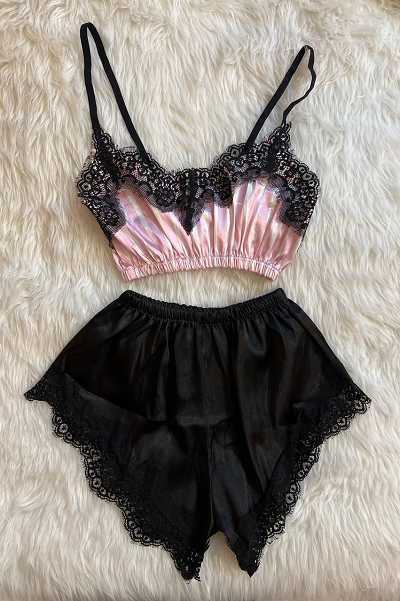 خرید ست دوتکه لباس خواب ساتن و دانتل شیک با قیمت استثنایی