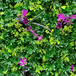 اگر به دنبال یک پنل ترکیبی خاص هستید که دیوار سبز مصنوعی شما را منحصر‌به‌فرد و خاص کند، کد ۰۹ انتخاب ایده‌آلی است. این محصول با رنگ‌های متنوع سبز و حضور رنگ صورتی حس و حال دخترانه و لطیف را به محیط اضافه می‌کند. گل‌ها و برگ‌های وارداتی به کار رفته در این پنل، همراه با جزئیات دقیق، ظاهری بسیار شیک و لوکس به آن بخشیده‌اند.